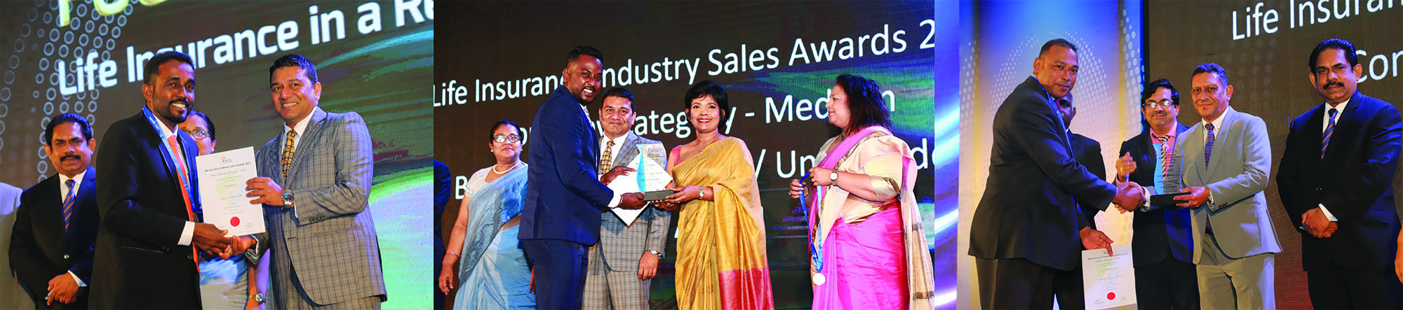 Life Insurance Industry Sales Awards 2022. National level winners - Mr. Kubenthiran – Best Branch Manager– Union Assurance, Mr. D A K M Chandrasiri – Best Supervisor/Team Leader – Union Assurance, Mr. A S Hettiarachchi – Best Advisor – Ceylinco Life.